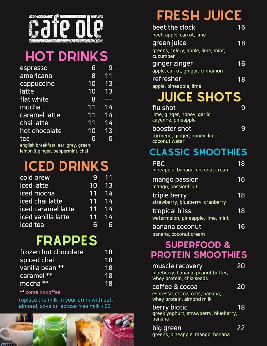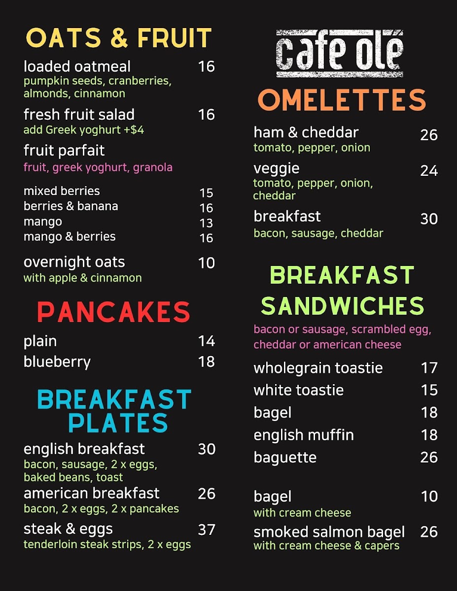 Every dish at Café Ole is carefully crafted to offer both quality and flavor, with a variety of options to suit different tastes and dietary needs. Whether you're in the mood for something filling or a lighter choice, this menu has something for everyone.
